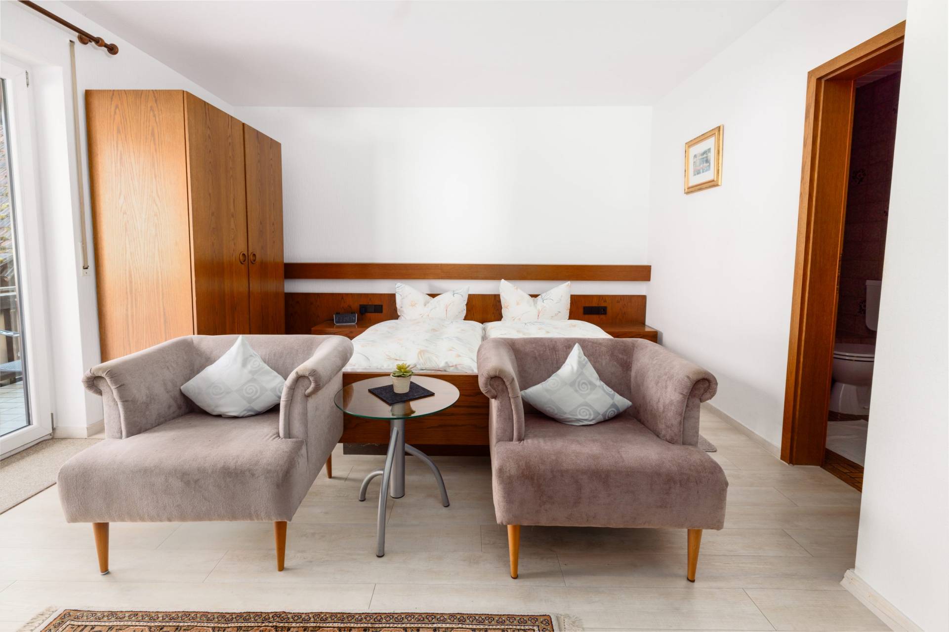 Das nach Osten ausgerichtete Gästezimmer Stettelberg bietet den perfekten Ort für einen ruhigen und erholsamen Aufenthalt. Mit einer Größe von 18 m² und einem privaten Balkon, auf dem Sie den Morgen mit einem Kaffee genießen können, ist es der ideale Rückzugsort.